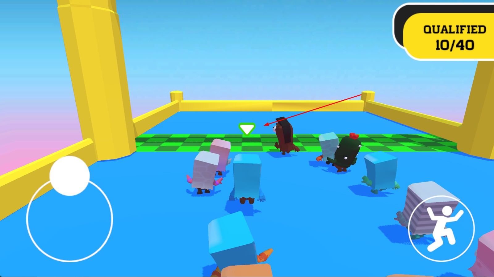 3、比赛开始后,操控角色向绿色箭头指示的目标区域前进,争取率先到达。