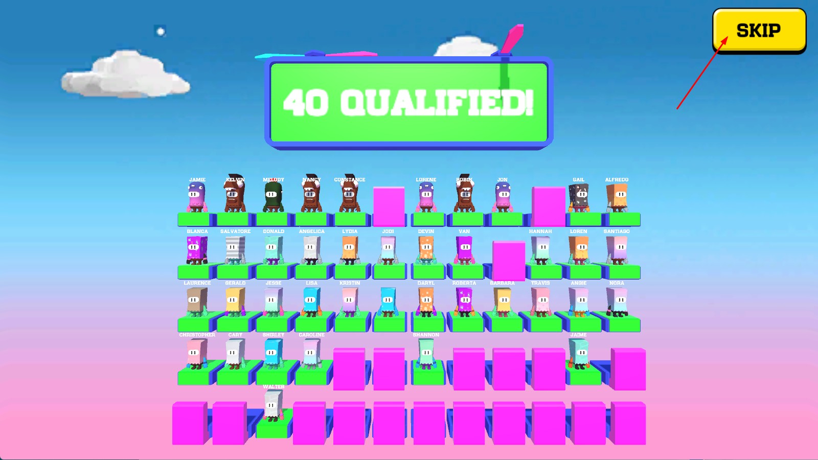 4、当屏幕显示“40-QUALIFIED!”时,点击【SKIP】,可跳过结算展示,进入下一轮或其他界面。