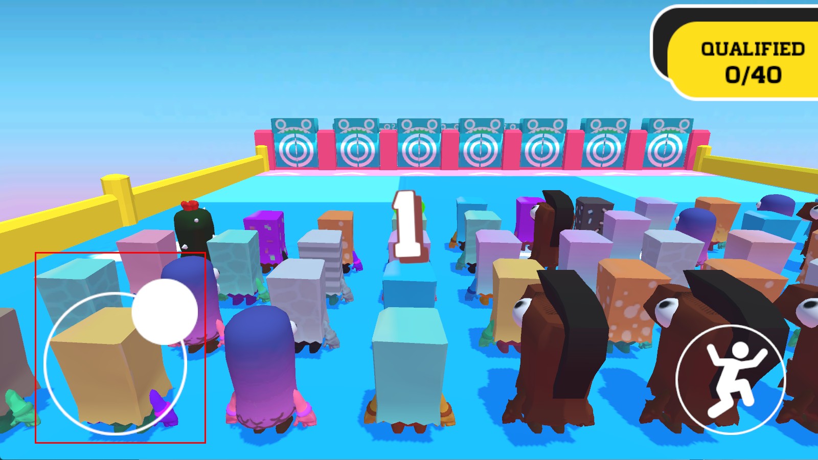 2、通过左侧虚拟摇杆,操控角色移动,在起始区域准备,等待比赛开始。