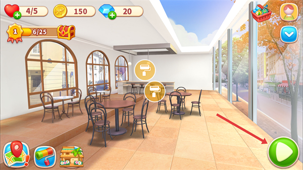 1、点击界面的绿色播放按钮,进入餐厅烹饪场景,准备开启顾客的餐食制作流程。