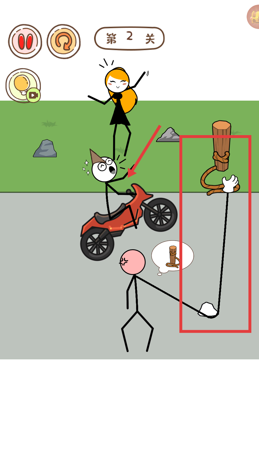 2、在第2关,操控角色手臂利用石头道具设置机关,对目标进行整蛊。