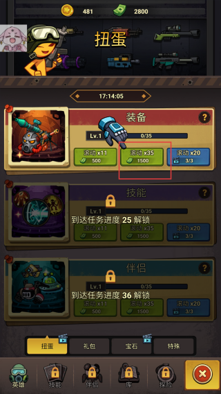 4、在扭蛋界面选择装备,消耗资源点击升级,提升装备的属性加成。