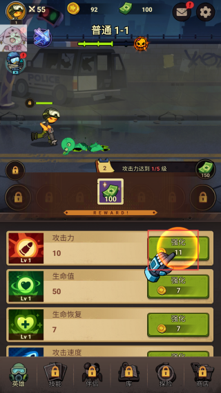 3、点击攻击力的【强化】按钮,增强角色攻击能力。