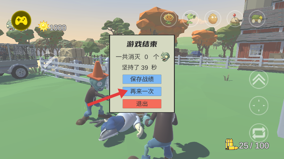 3、在场景中与僵尸遭遇时,进行战斗操作,消灭僵尸,推进游戏进程。