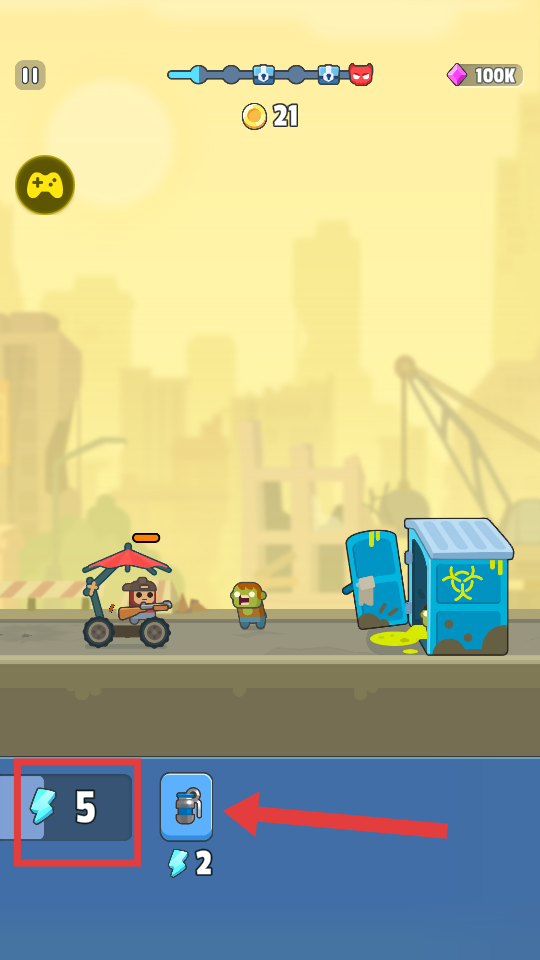 2、收集闪电资源,利用内置菜单功能提升战车攻击能力,增强对战丧尸的效率。
