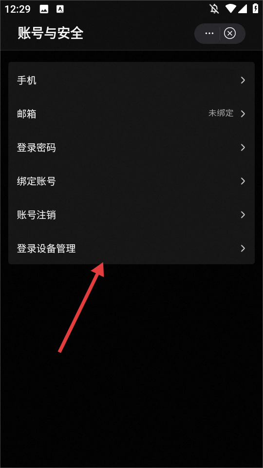 3、在“账号与安全”页面,点击【登录设备管理】选项,查看账号的登录设备情况。