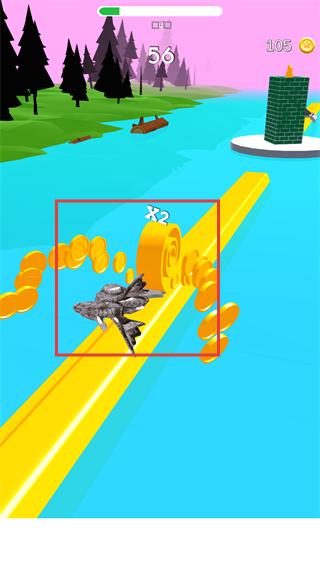 2、操控龙形工具撞击带【x2】标识的道具,触发翻倍收益,同时收集沿途金币,分数逐步提升。