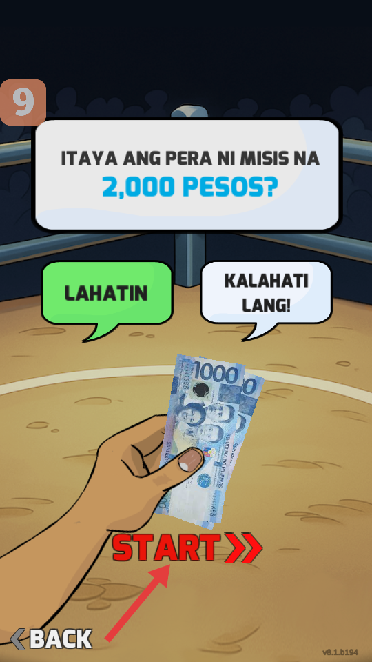 1、点击【START】,进入游戏,开始关于2000比索的挑战。