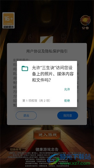3、加载完毕需要对游戏开放一些手机的权限才可以正常游戏。
