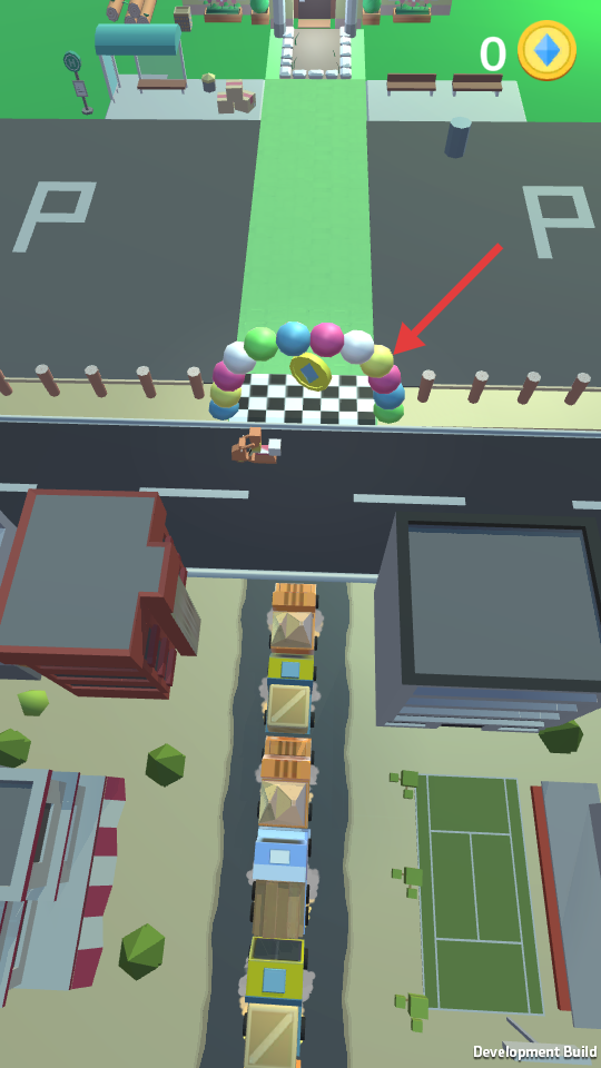 4、朝着带彩色气球拱门的终点前进,抵达终点完成关卡。
