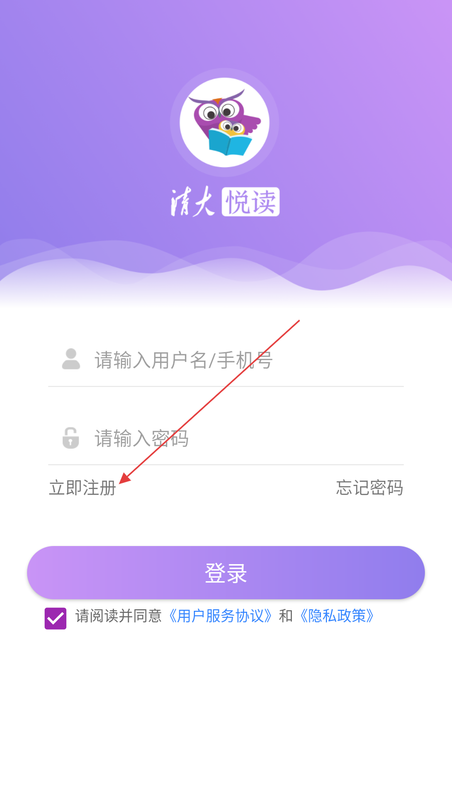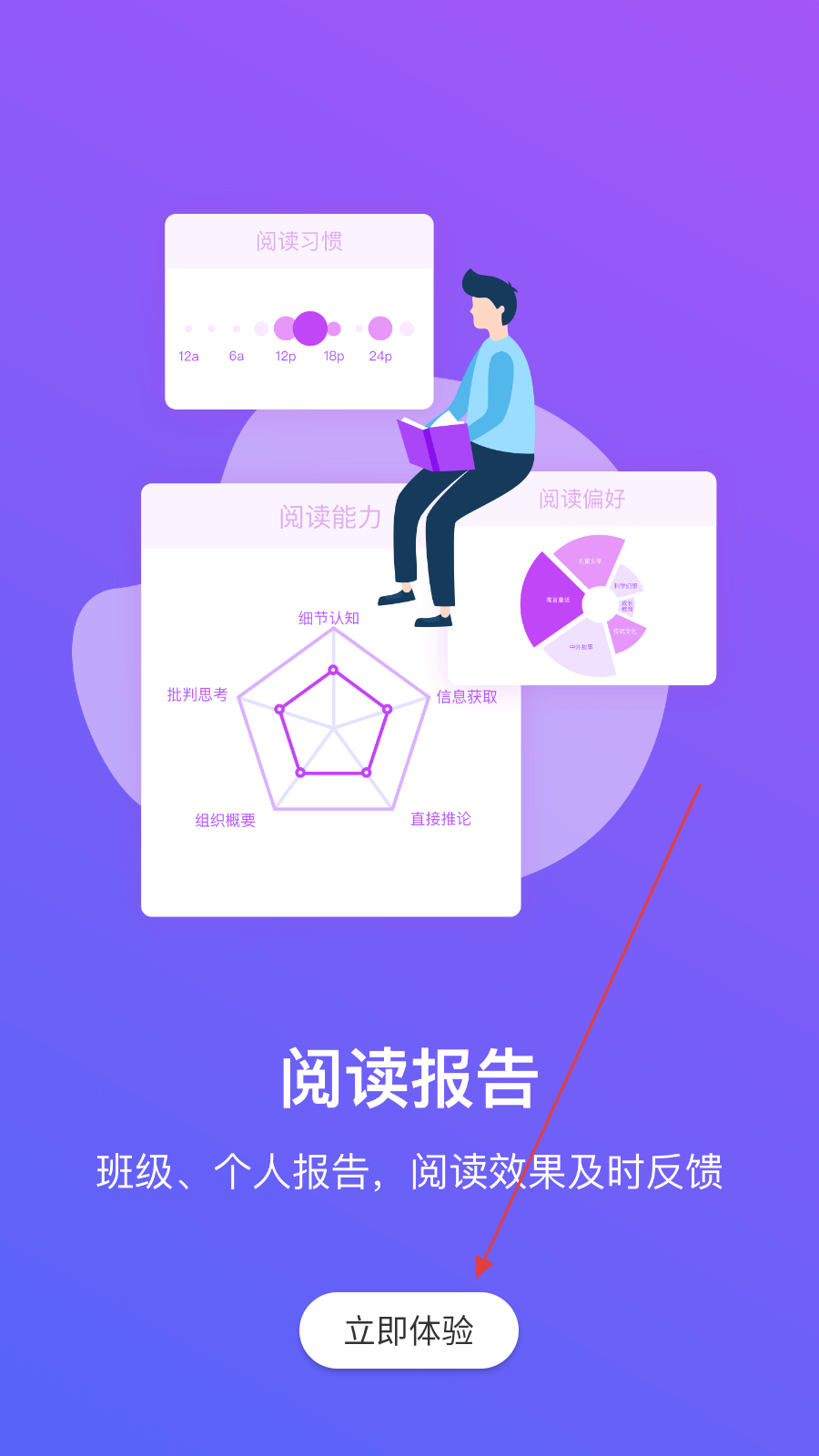 1、在欢迎页点击【立即体验】,进入清大悦读登录页面。
