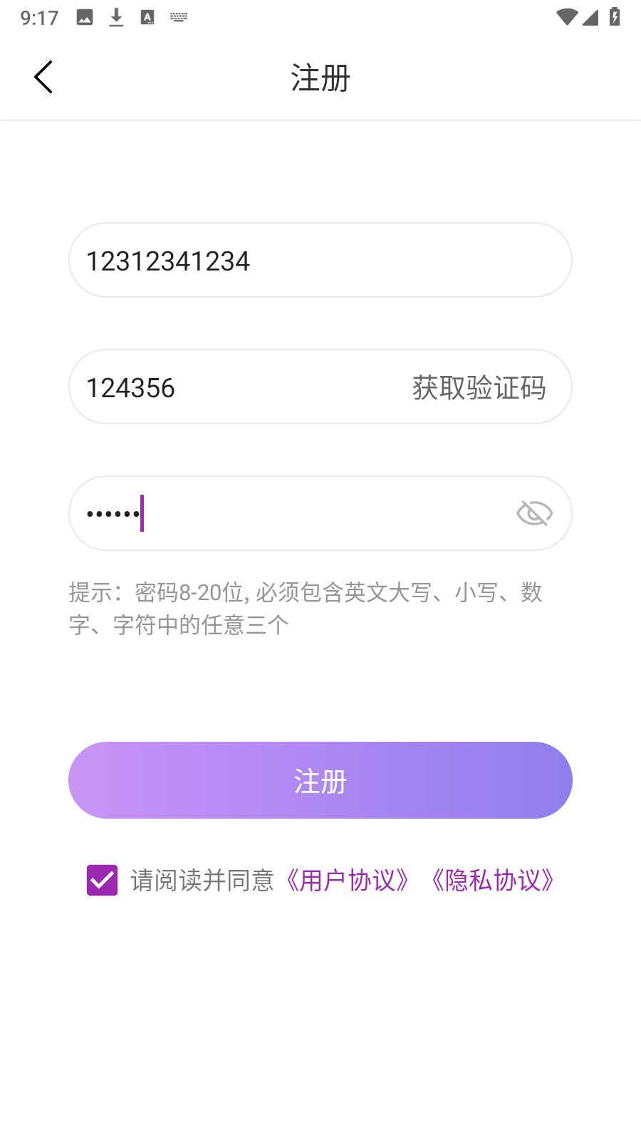 4、输入完成后,点击【注册】,即可完成账号注册。