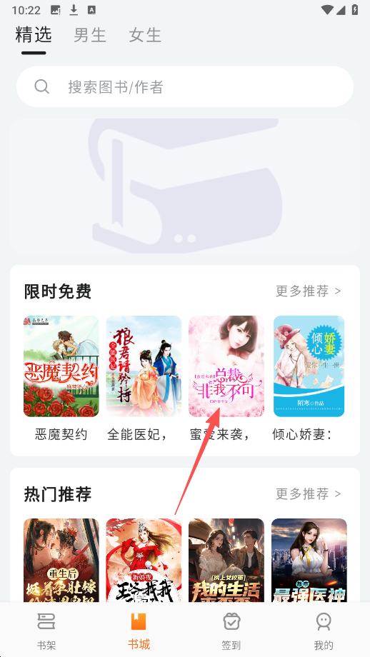 2、在书城页面,挑选【目标小说】,进入小说详情页。