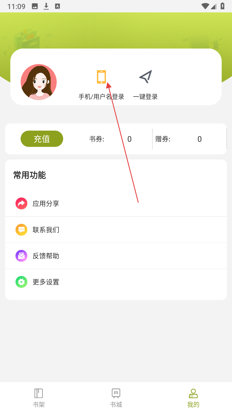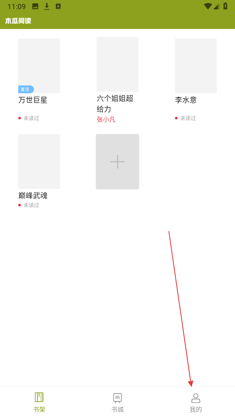 1、在书架页面,点击右下角【我的】,进入个人页面。