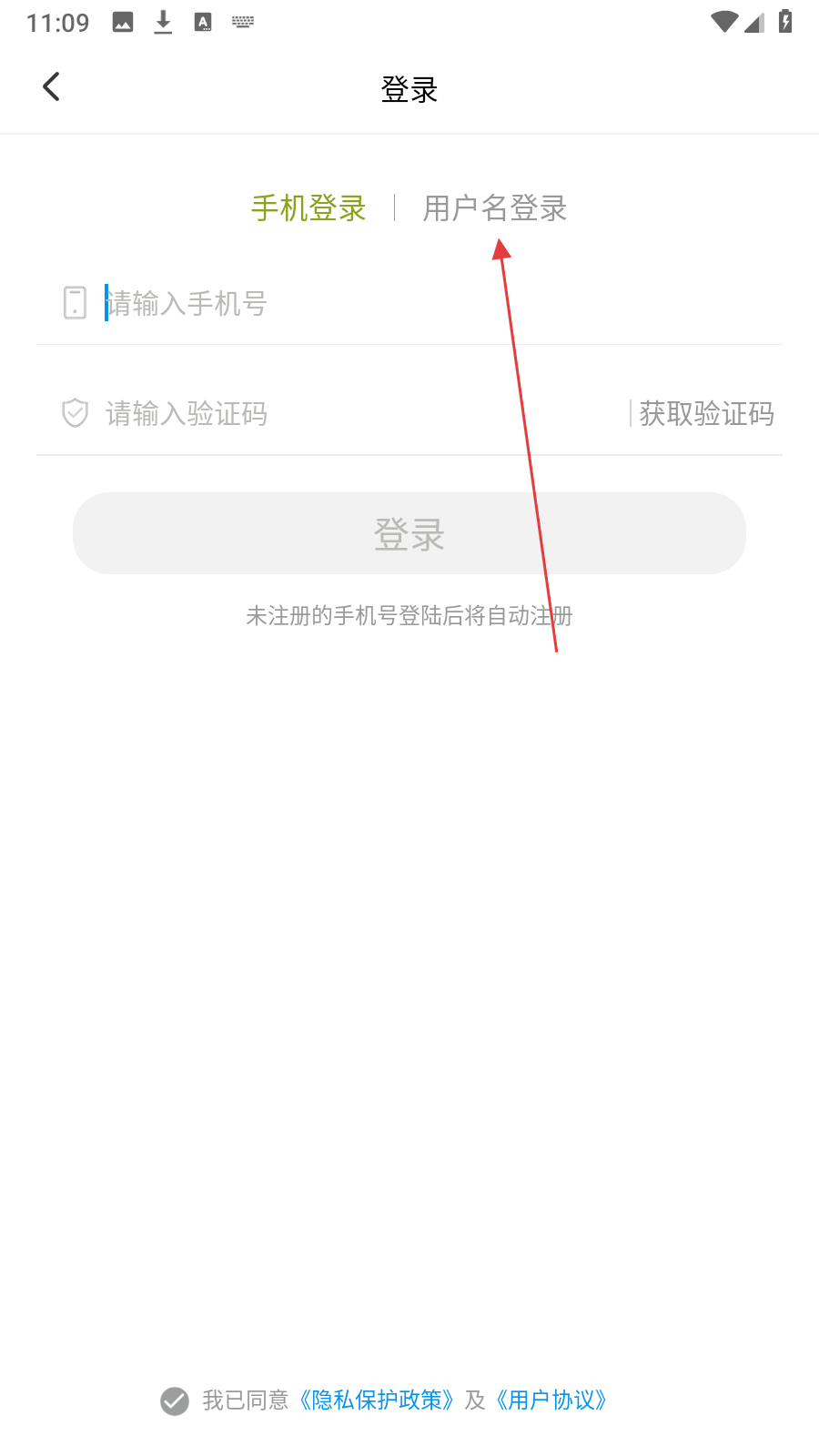 3、在登录页面,点击【用户名登录】,切换到用户名登录界面。