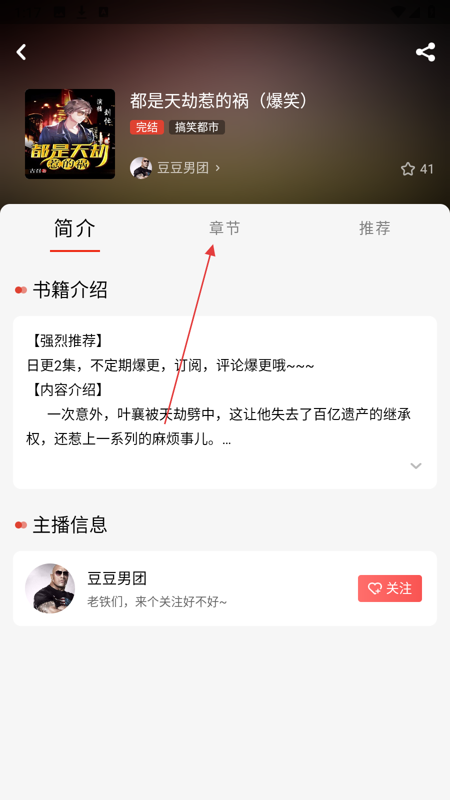 3、进入书籍详情页,点击【章节】,进入章节列表页面。