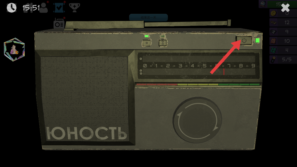 4、点击收音机开关按钮,使用设备,完成任务获取线索。