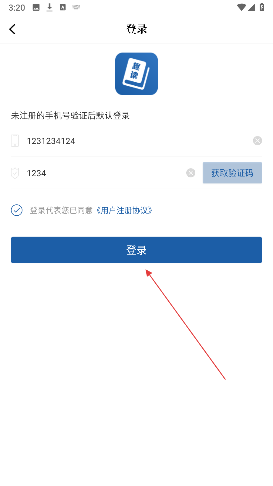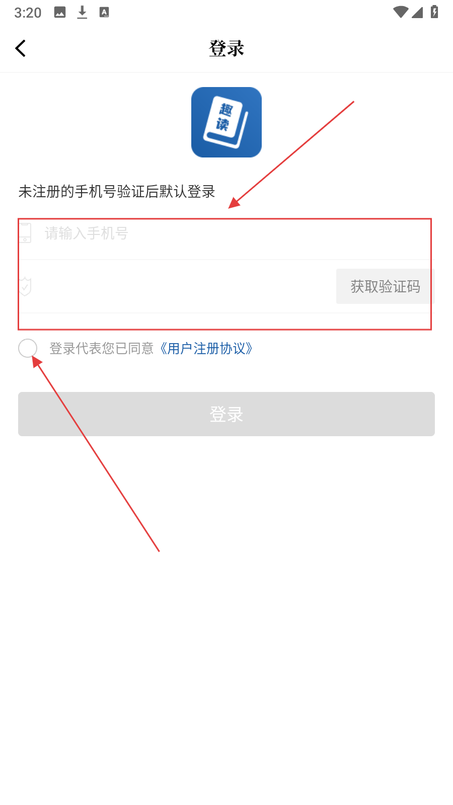3、在登录页面,输入【手机号和验证码】,勾选【协议】。