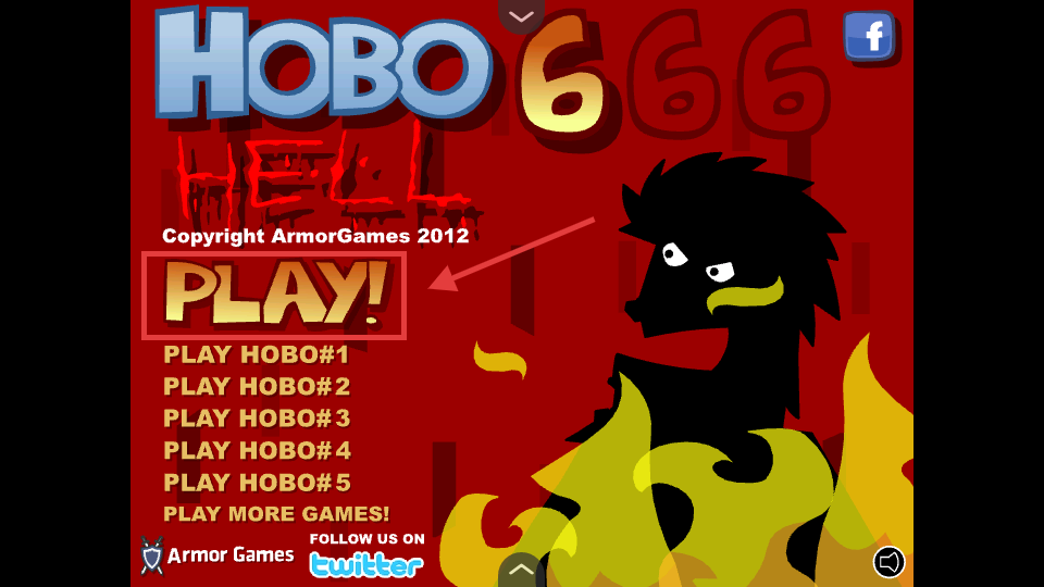 1、在游戏主界面,点击【PLAY!】按钮即可开启【Hobo6-Hell】的地狱冒险,也可选择系列前作关卡体验。