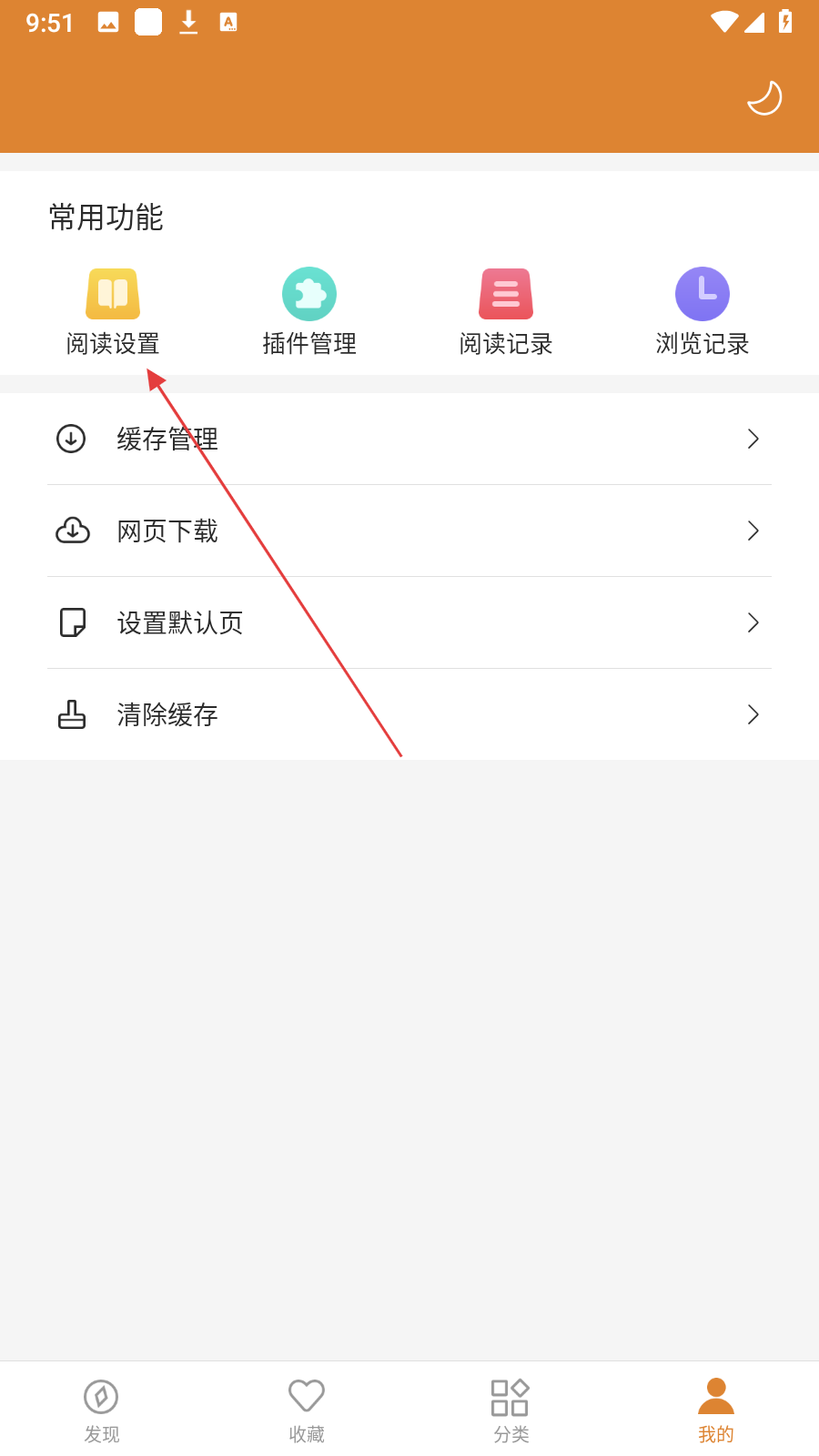 2、在个人页面,点击【阅读设置】,进入阅读设置页面。