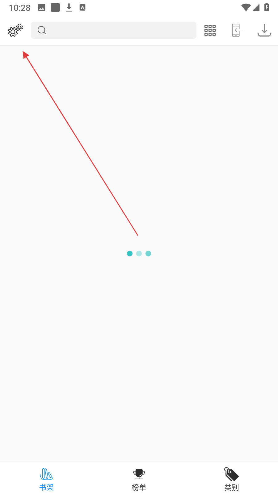 1、在书架页面,点击【左上角设置图标】,进入设置页面。