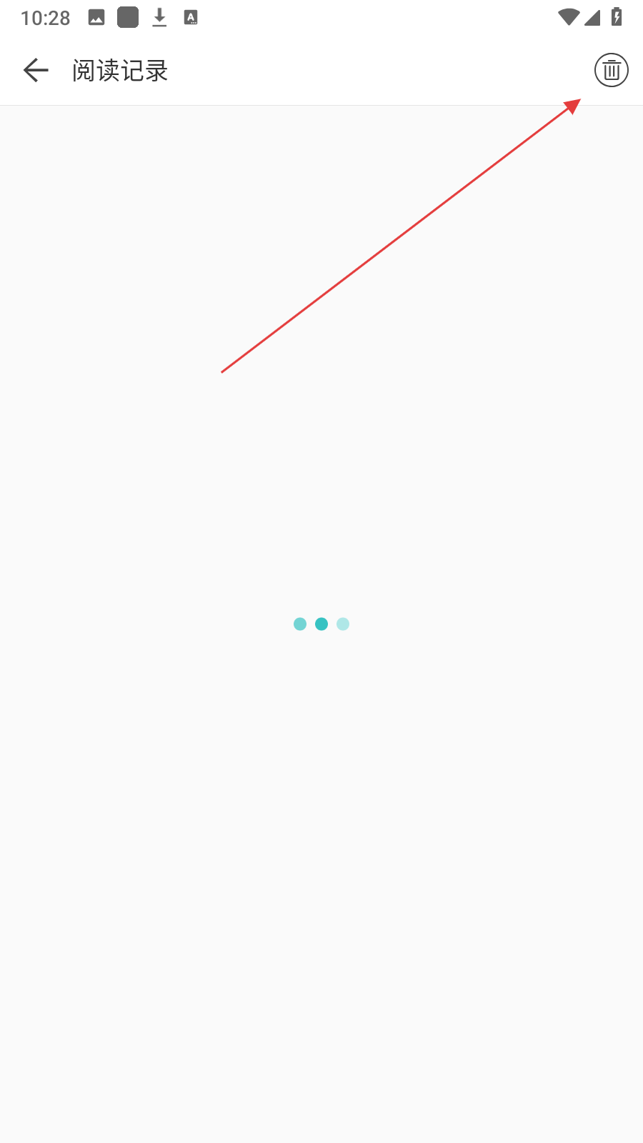 3、在阅读记录页面,点击右上角【删除图标】,弹出确认弹窗。