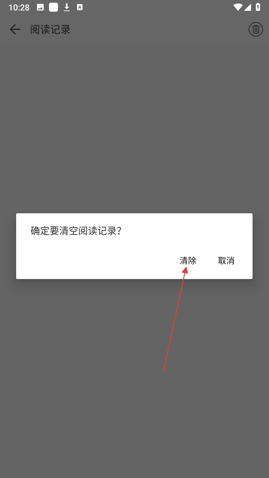 4、在弹窗中,点击【清除】,即可清空阅读记录。