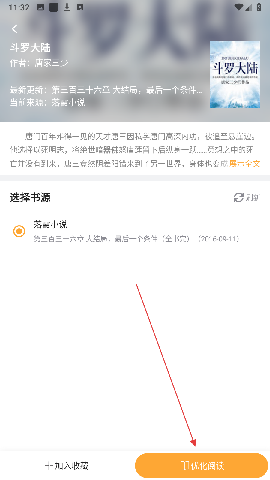 4、进入书籍页面后,点击【优化阅读】,即可获得更好的阅读体验。