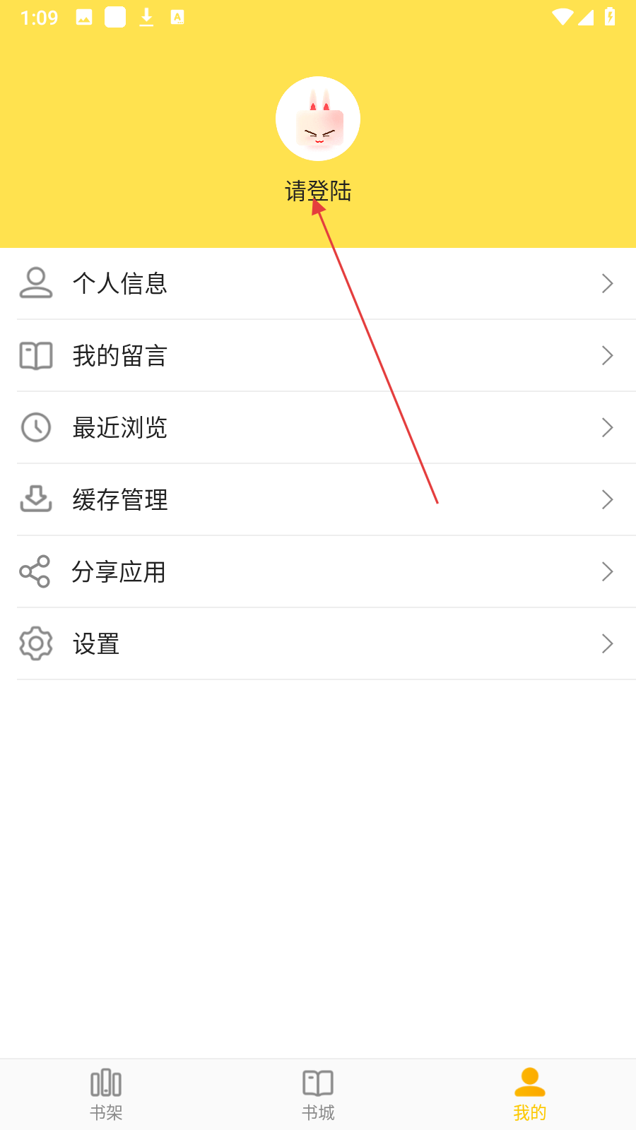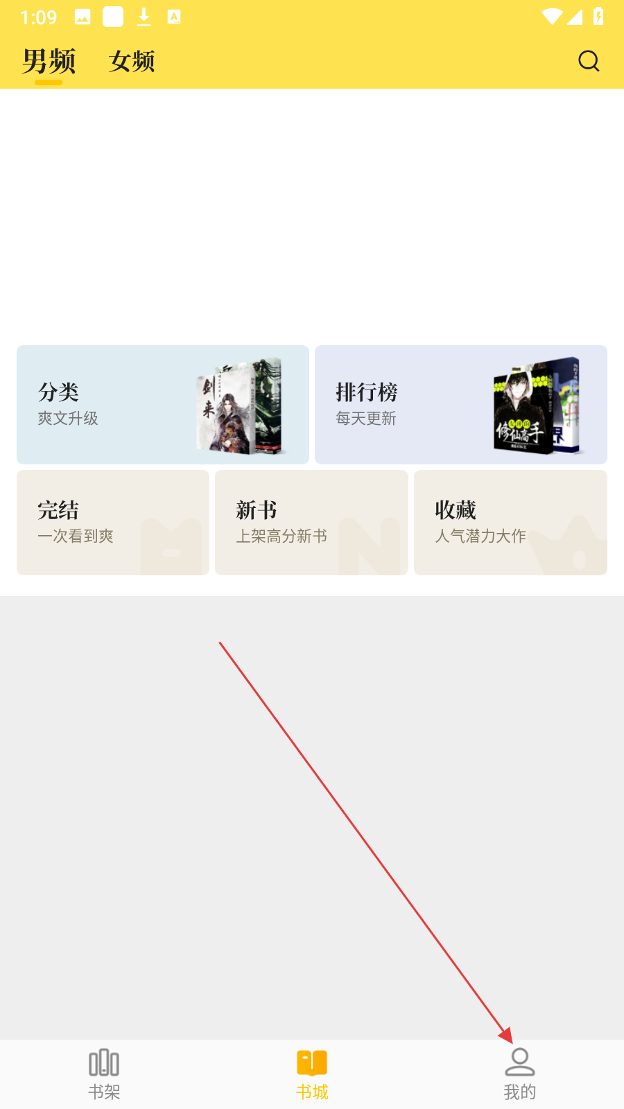 1、在书城页面,点击底部【我的】,进入个人页面。