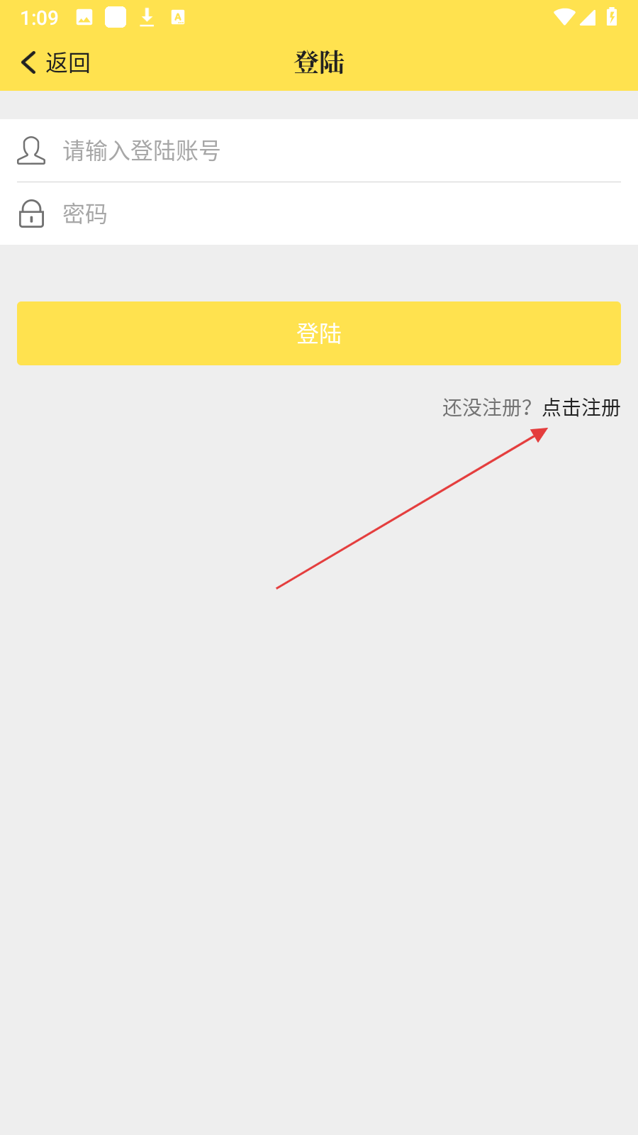 3、在登陆页面,点击【点击注册】,进入注册页面。