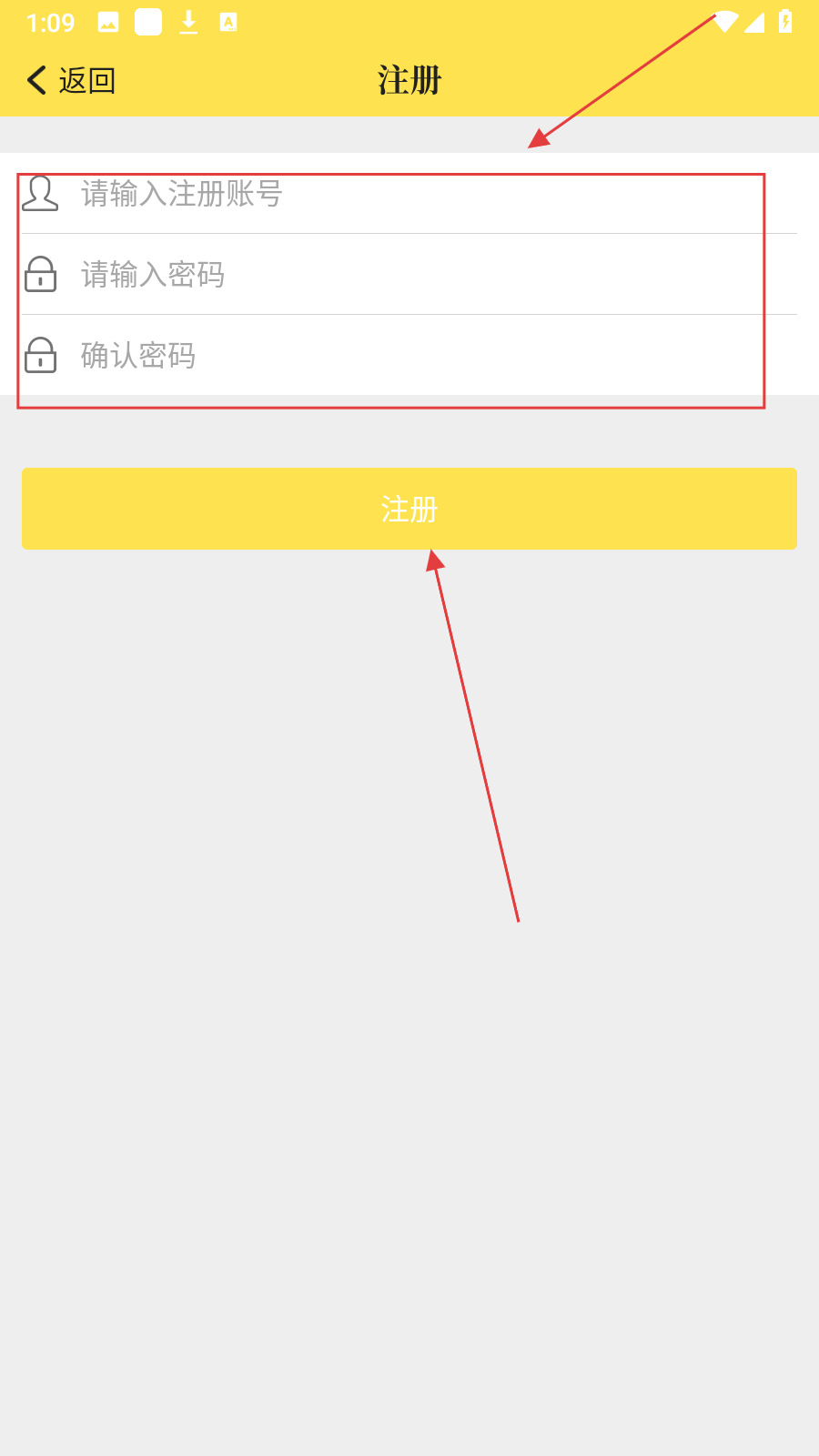 4、在注册页面,输入【注册账号、密码并确认密码】后,点击【注册】,即可完成注册操作。
