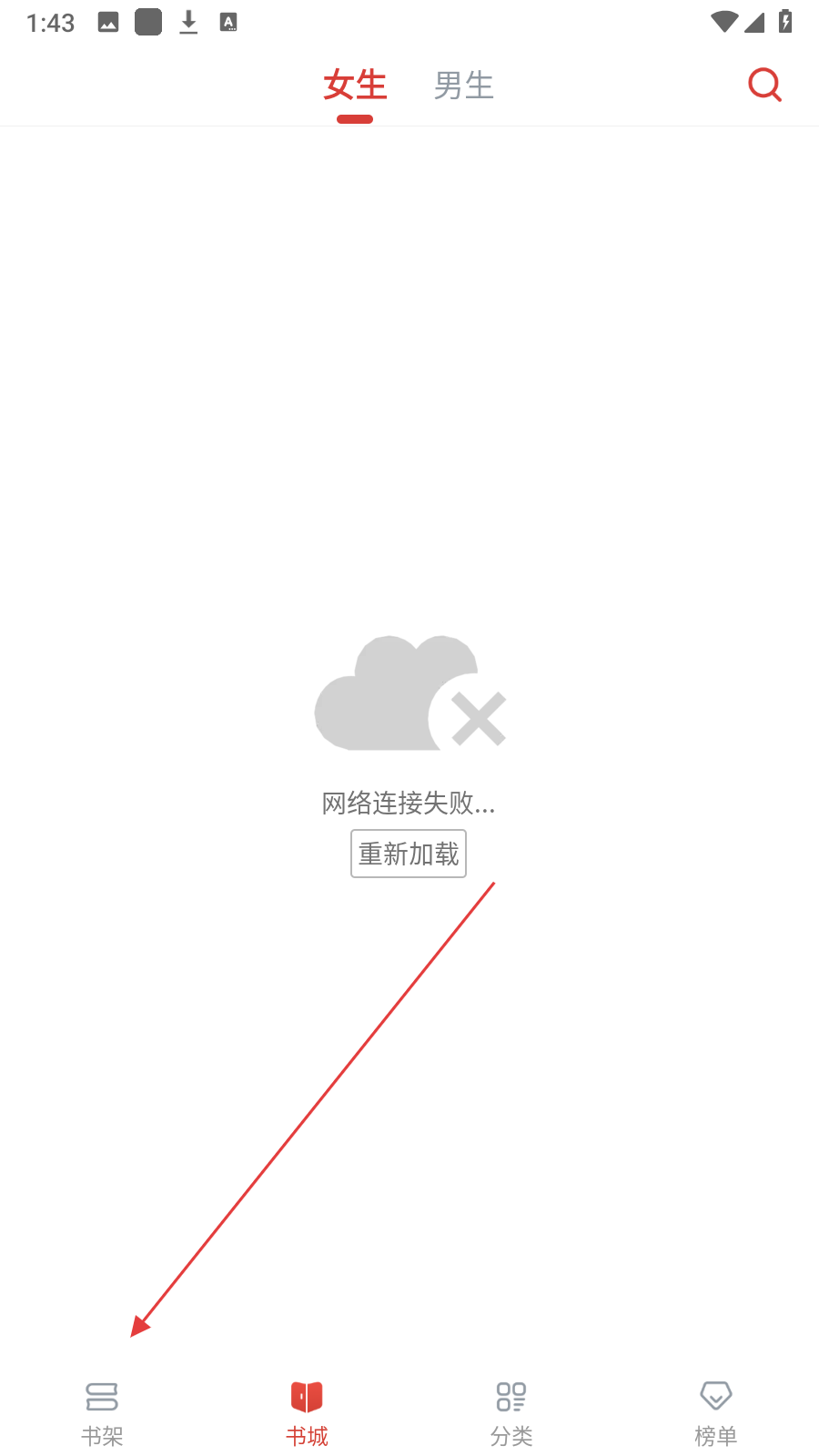 1、在书城页面,点击底部【书架】,进入书架页面。