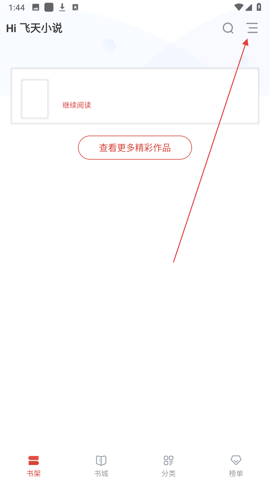 2、在书架页面,点击右上角【三条横线图标】,展开功能菜单。
