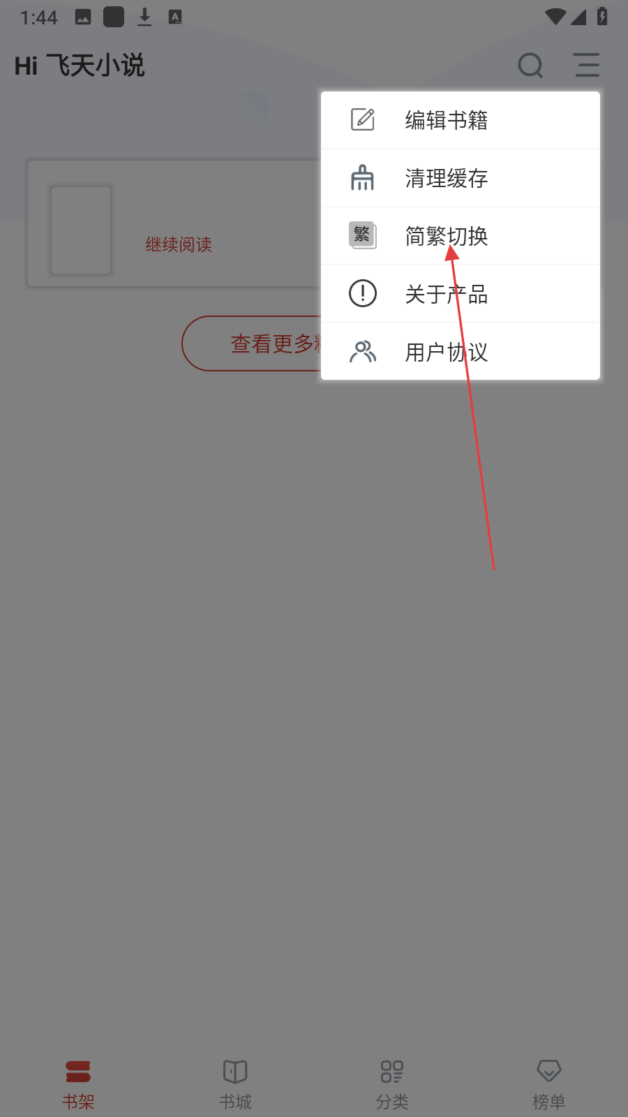 3、在功能菜单中,点击【简繁切换】,进入语言选择页面。
