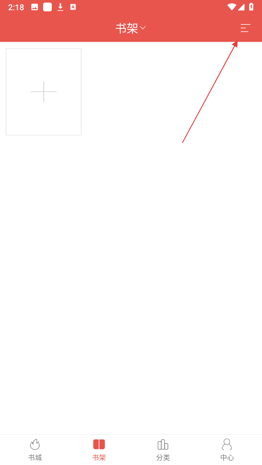 1、在书架页面,点击右上角【三条横线图标】,展开功能菜单。