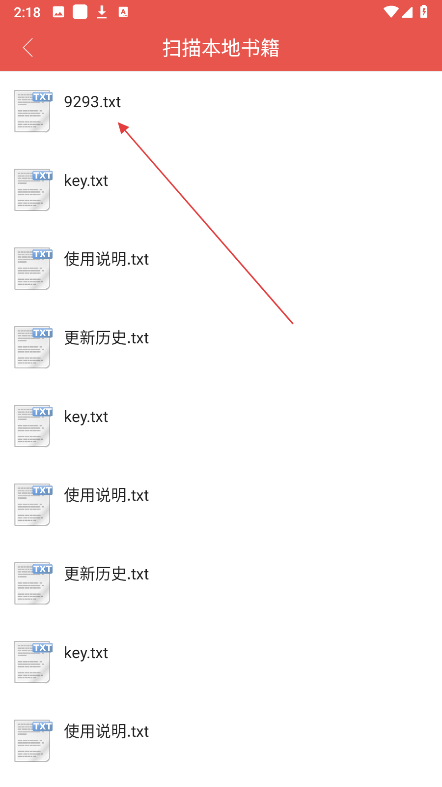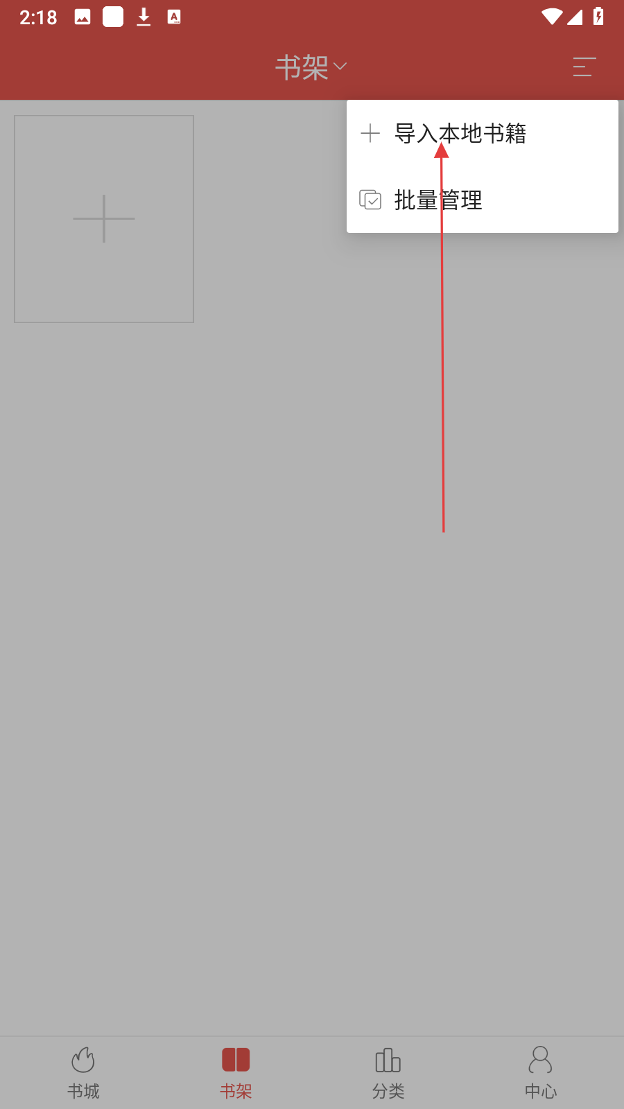 2、在功能菜单中,点击【导入本地书籍】,进入扫描本地书籍页面。