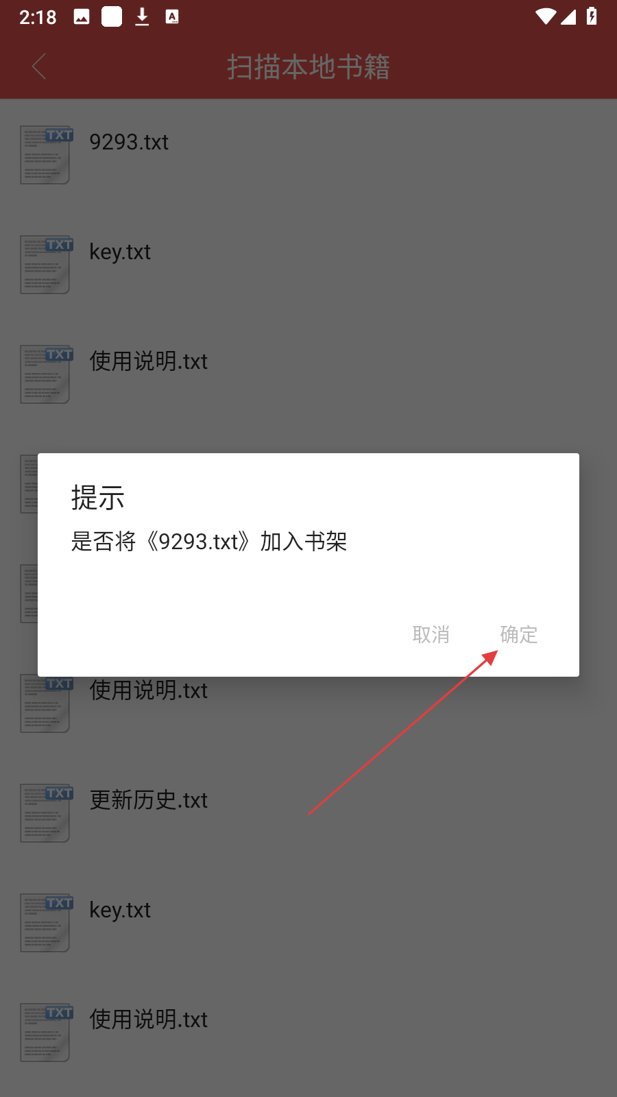 4、在弹出的提示框中,点击【确定】,即可将书籍加入书架。