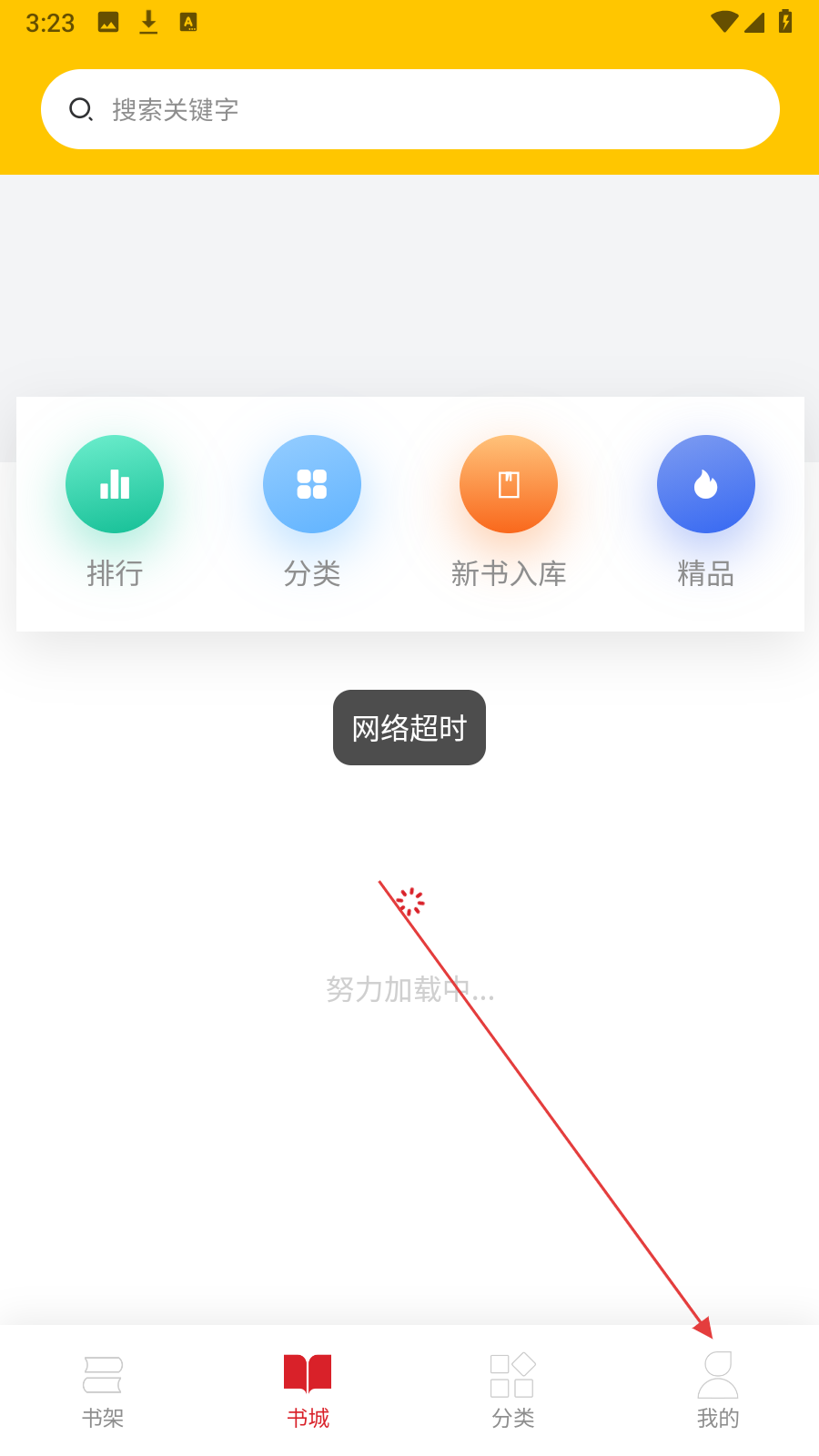 1、在书城页面,点击底部【我的】,进入登录相关页面。