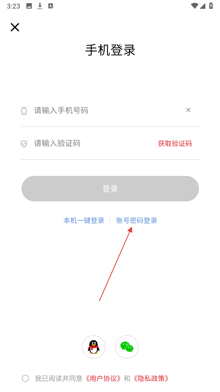 2、在登录页面,点击【账号密码登录】,进入账号登录页面。