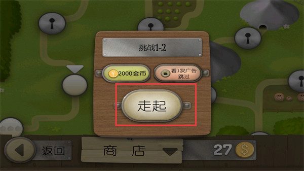 1、在挑战1-2界面,点击【走起】按钮消耗2000金币进入关卡。