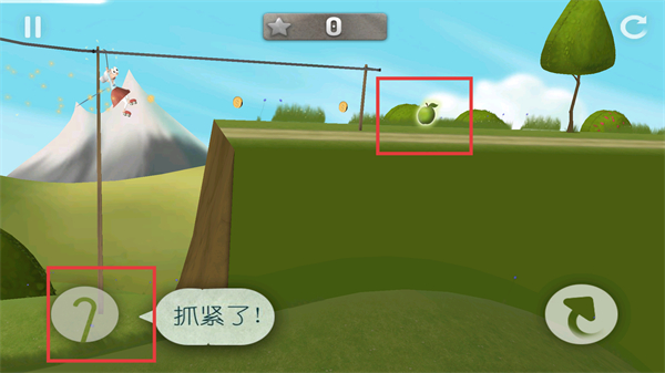3、滑索移动时注意收集【绿色苹果】道具,确保角色安全通过路段。