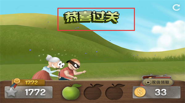 4、成功过关后会显示【恭喜过关】,可领取金币和苹果奖励。