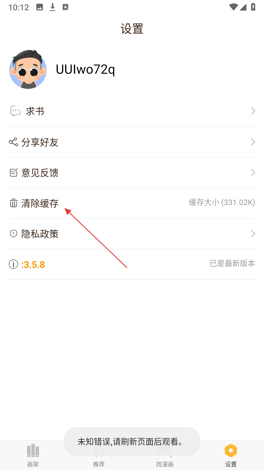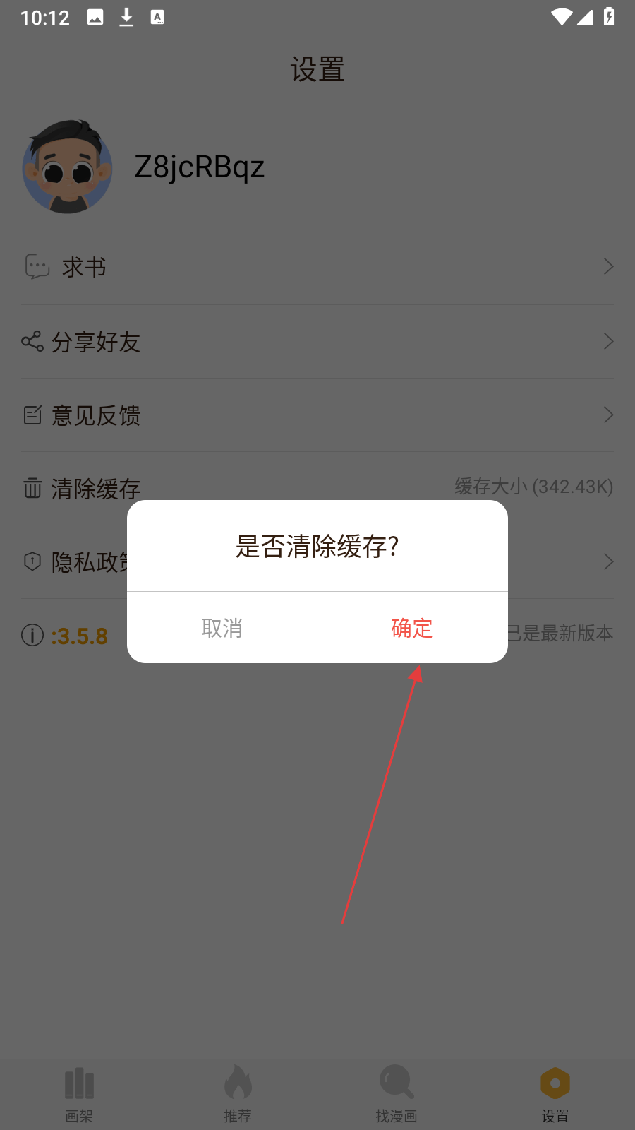 3、在设置页面,点击【清除缓存】,弹出确认清除缓存的提示框。