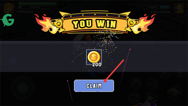 4、战斗胜利后,点击【CLAIM】按钮领取金币奖励,积累资源用于角色升级或解锁新技能,继续挑战更强的敌人。