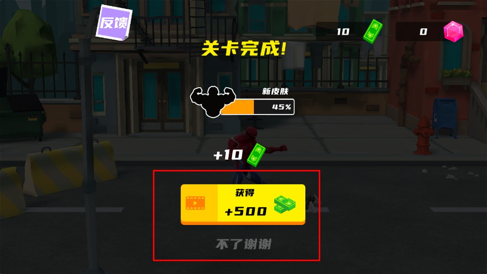 4、通关后,可选择观看视频获取更多奖励,积累资源解锁新皮肤等内容。