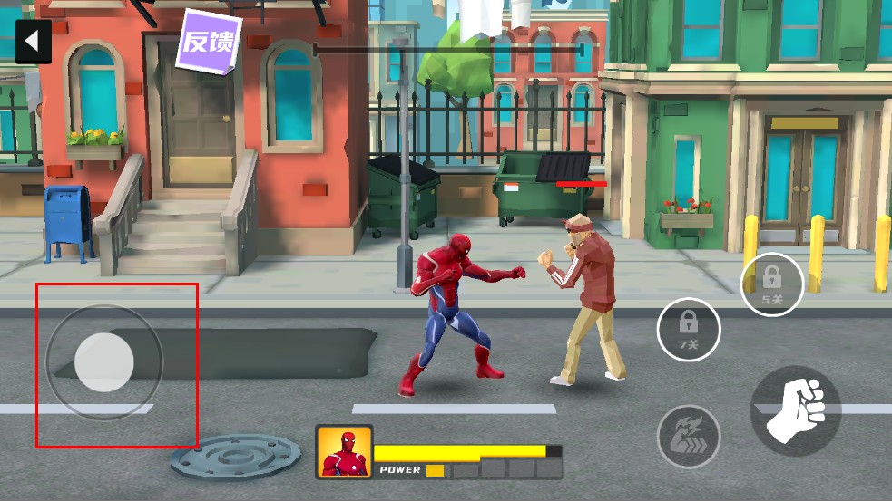 2、用左侧虚拟摇杆,控制蜘蛛侠移动,接近敌人。