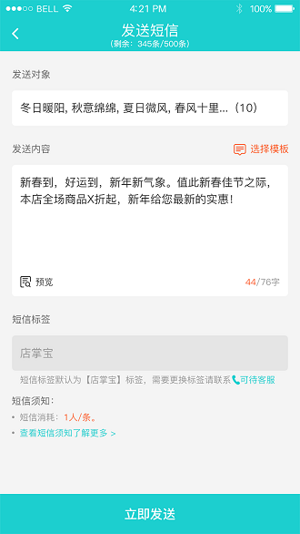 2、查看消息:如消息通知和在线联系,店长和用户可随时在线沟通交流;