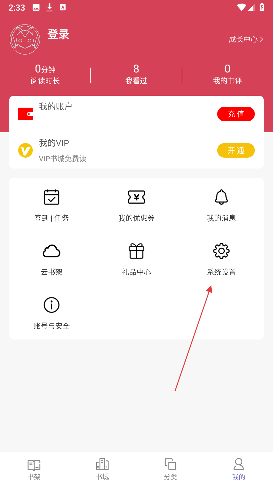 2、在个人页面,点击【系统设置】,进入系统设置页面。
