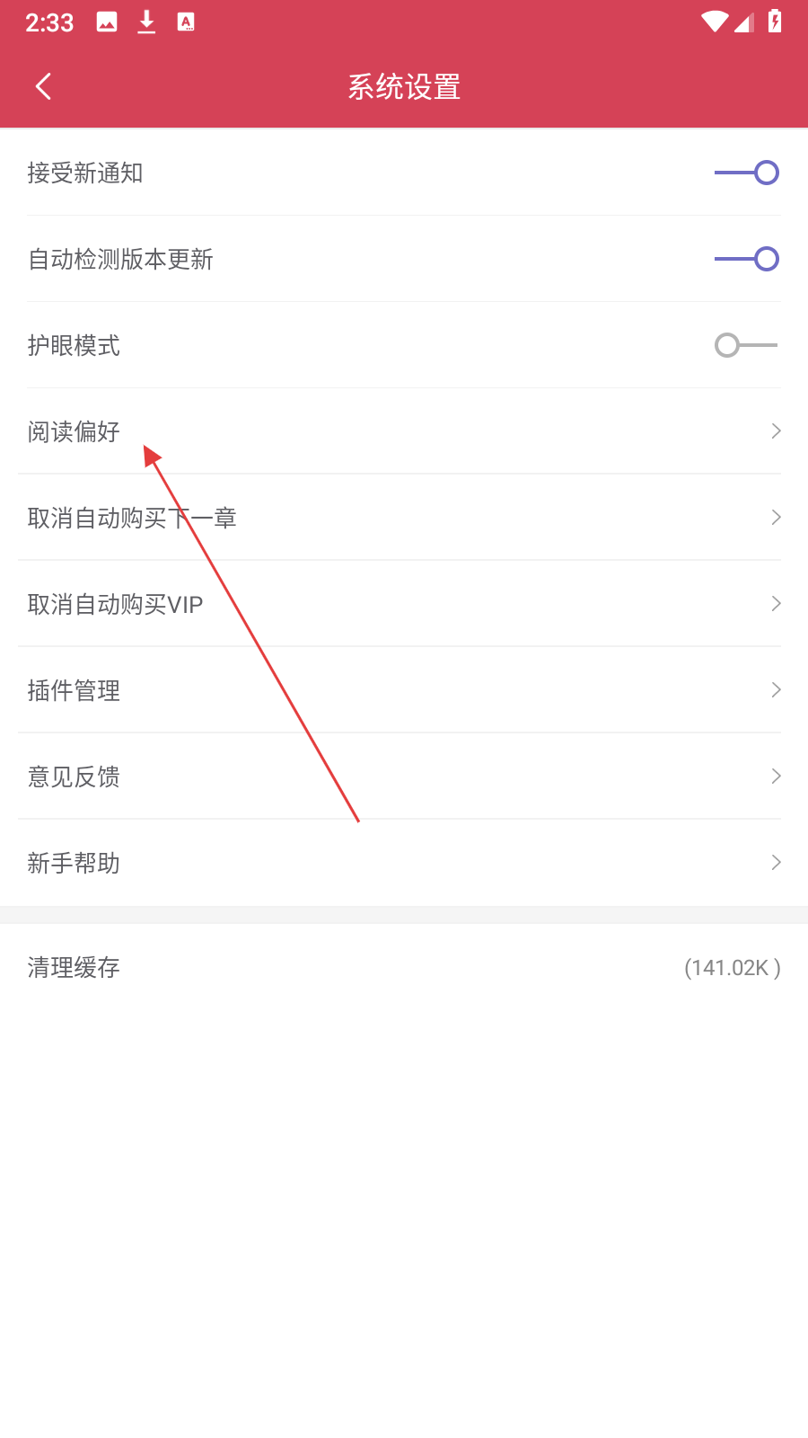 3、在系统设置页面,点击【阅读偏好】,进入阅读偏好设置页面。