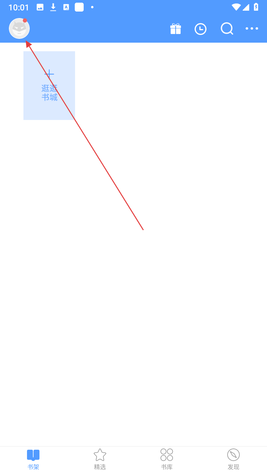 1、在书架页面,点击【左上角头像】,进入个人相关页面。